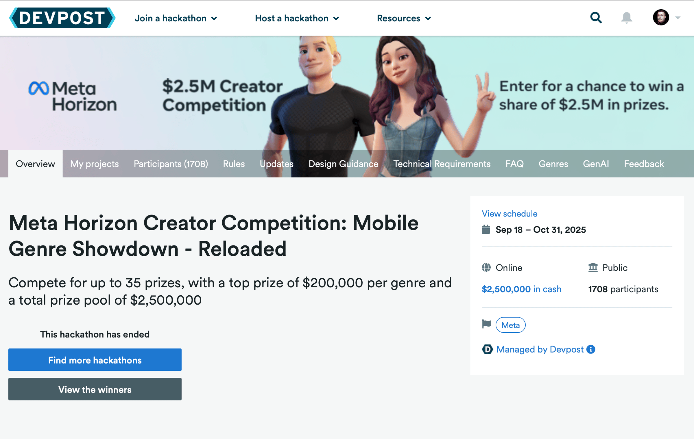 So over the month of October, myself, Ross and Marc Wakefield decided to enter a Hackathon competition for Meta's Horizon Worlds platform. Hosted by Devpost, it had a massive prize pool of $2.5million split out into different categories. We'd have just over a month to create and develop a game world in order to hit the deadline. And boy it ended up being close.