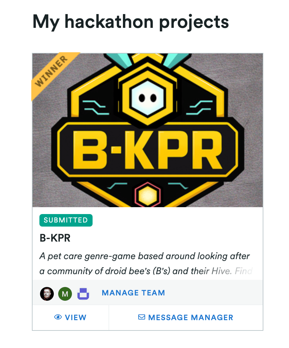 Once we’d submitted, there was a public vote and then an internal judging round, and somebody who was good at this would have sent out an email and asked you all to try out our world and go vote for us. But I am bad at this, so I forgot. Luckily though the judges liked our idea and execution enough that we came runner up.